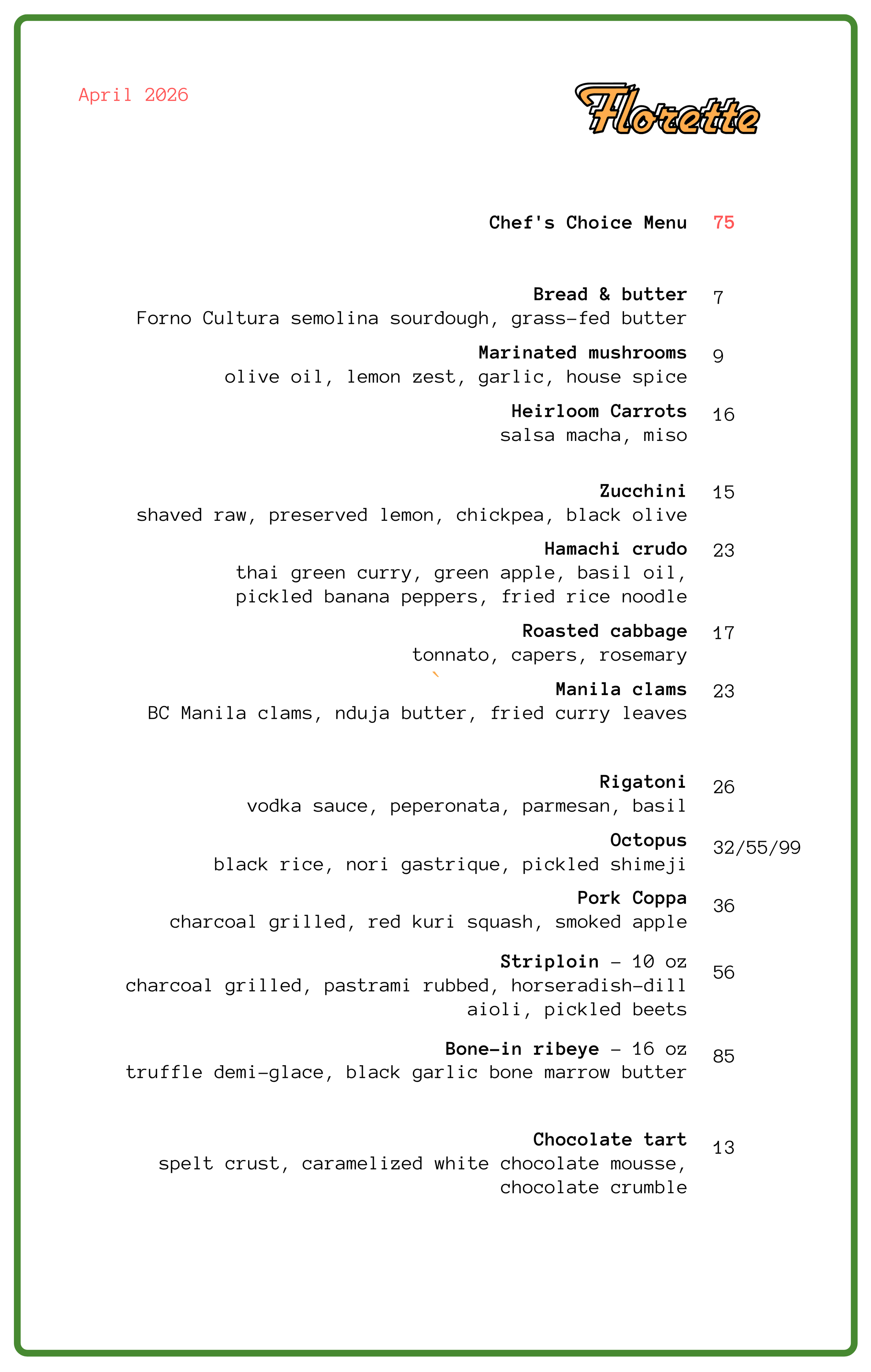 Email us at info@florettetoronto.com for Fri/Sat parties of 7+.