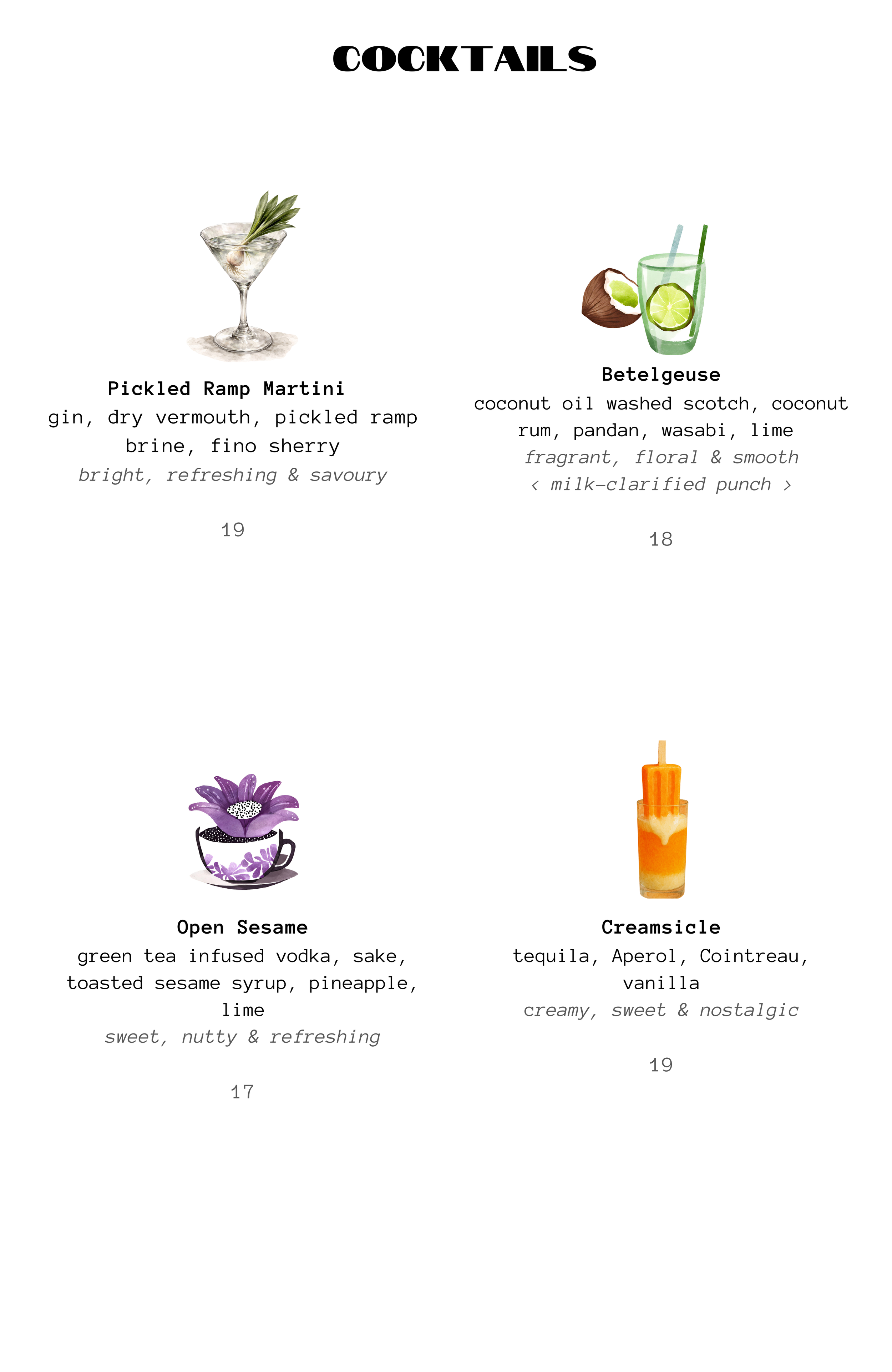We’d love to make your event an experience to remember. Large group food / drink menus are available, or let us craft something just for you.